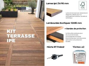 Kit terrasse bois, lame de terrasse, lambourdes, visserie et accessoires, produits de traitement, ...